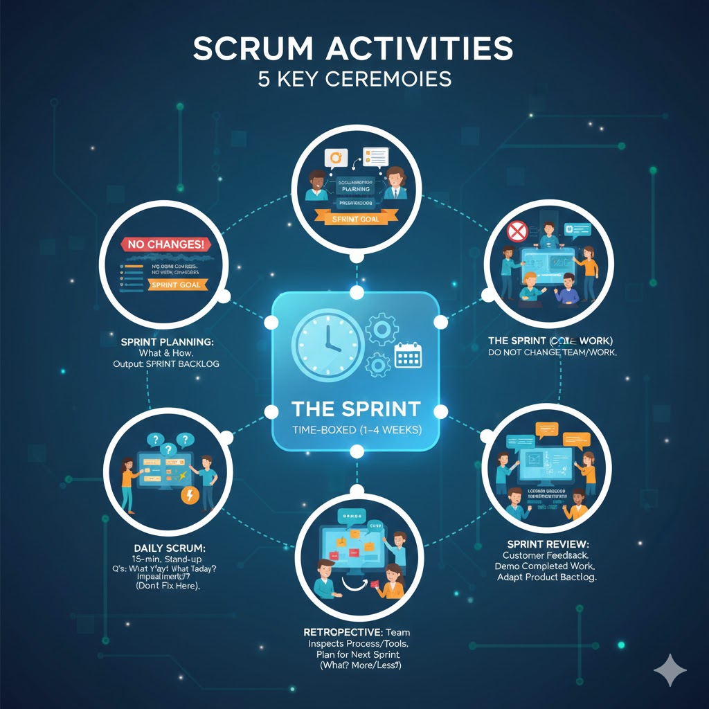 Scrum Activities – 5 “khung họp” quen thuộc lặp lại trong từng Sprint.